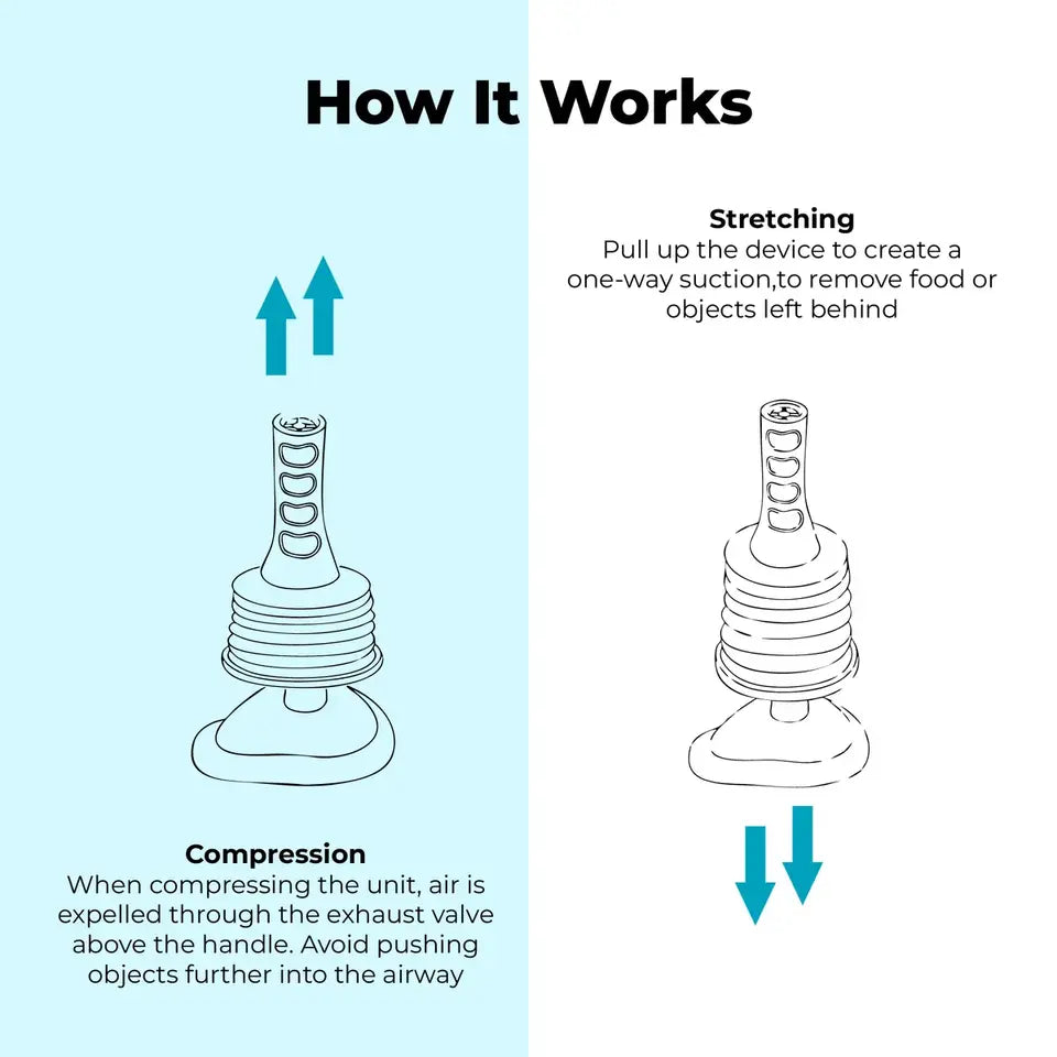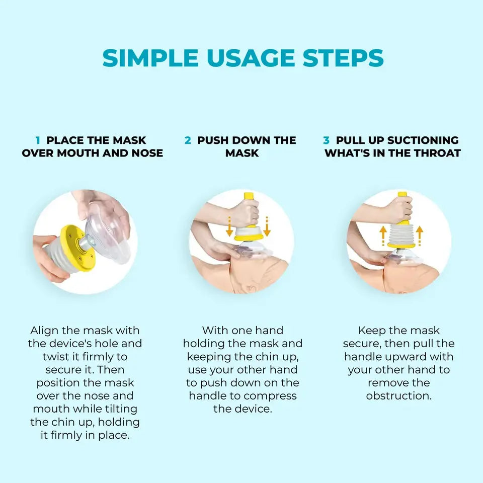 AirRelief™ uses powerful, non-invasive suction to remove airway blockages in seconds. Simply place, push, and pull to clear obstructions safely and effectively.